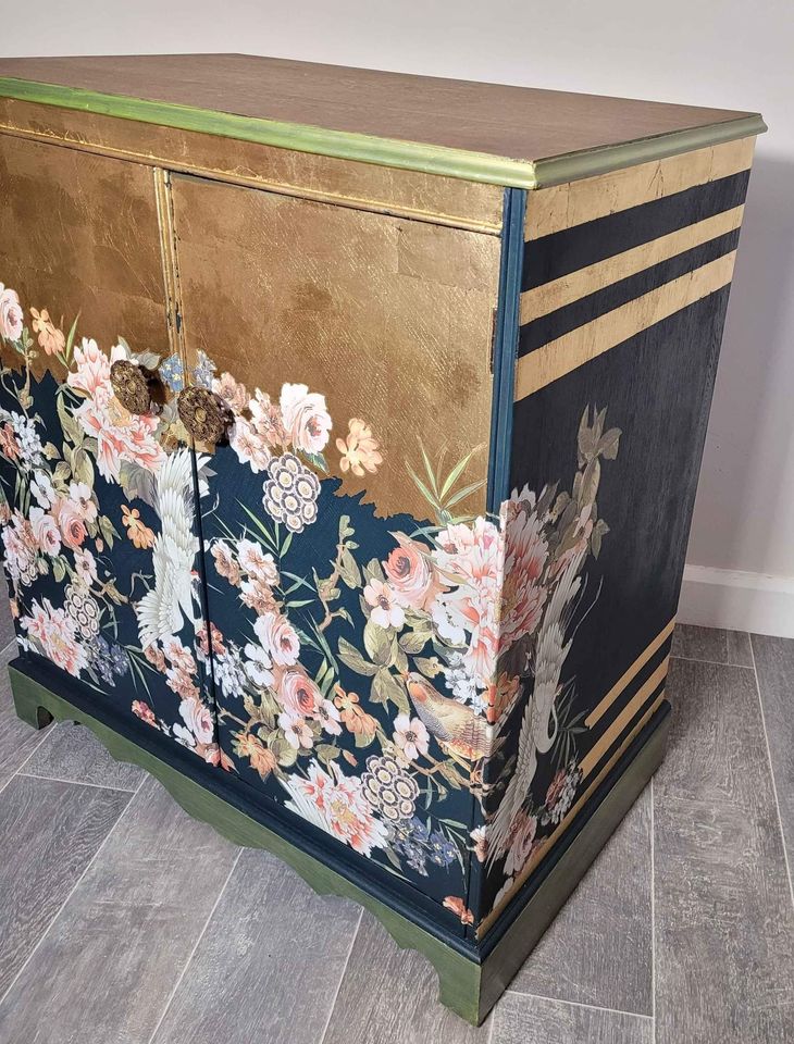 This upcycled cabinet is in impeccable condition, meticulously crafted to preserve its vintage allure while ensuring functionality and durability for years to come.