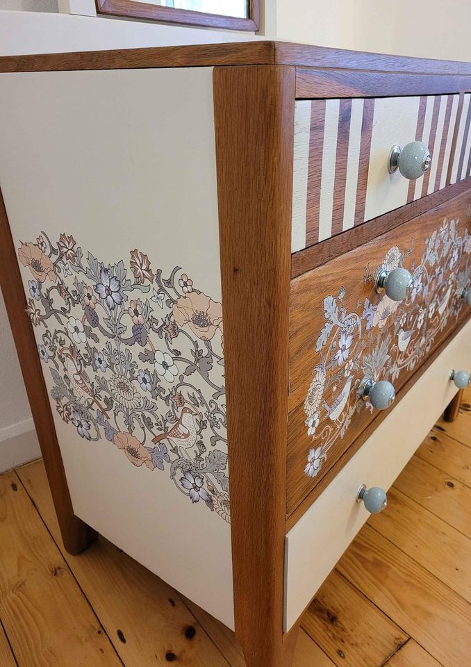 Embrace the enchanting allure of nature with our William Morris-inspired Dressing Chest with Mirror. Each drawer is adorned with motifs reminiscent of lush landscapes and delicate flora, adding a touch of organic charm to your space.